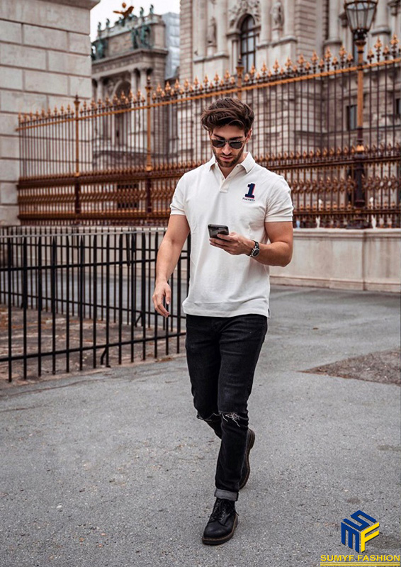 Với những cánh mày râu theo đuổi phong cách chững chạc, cách mix áo polo với quần jeans dài nam chính là sự lựa chọn cho phong cách khỏe khoắn, lịch lãm. Áo polo với thiết kế có cổ sẽ tăng thêm vẻ ngoài chín chắn cho chàng.