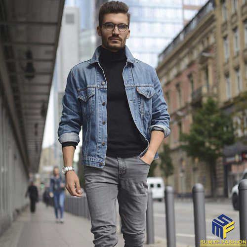 5. Diện quần jeans dài nam cùng áo khoác năng động, phong cách
