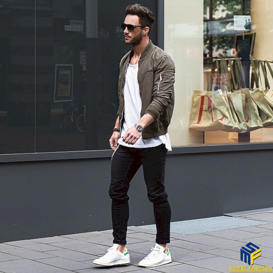 Những anh chàng phóng khoáng luôn tìm tới cho mình phong cách thời trang thoải mái và năng động. Áo Bomber Jacket kết hợp quần Jeans chính là sự kết hợp được nhiều chàng trai lựa chọn. Dáng áo Bomber Jacket trẻ trung với phần cổ và cuối vạt eo bó sát mix cùng quần jeans để tạo cá tính và gu thời trang riêng cho mình.